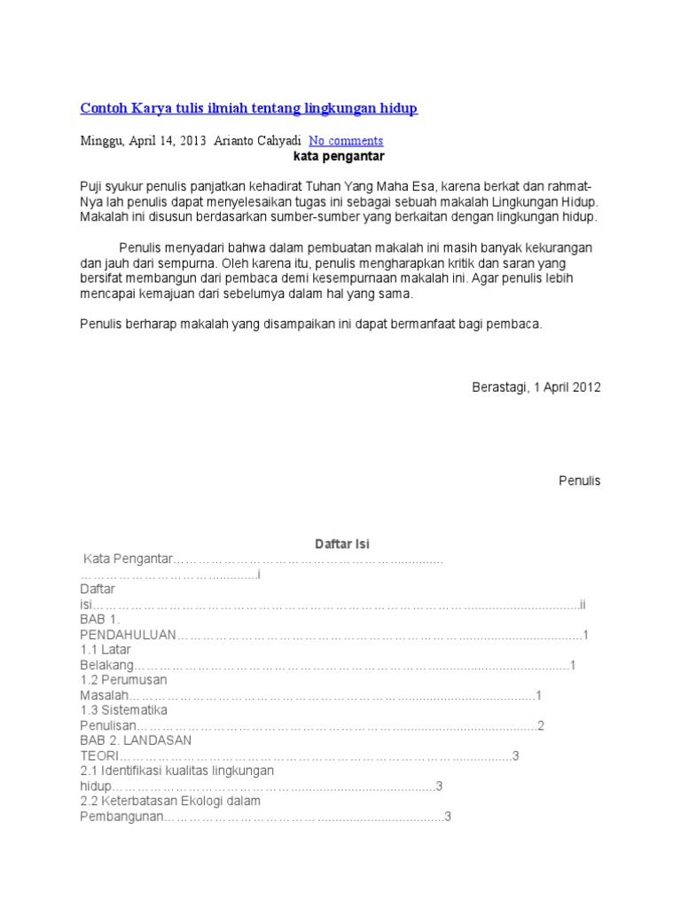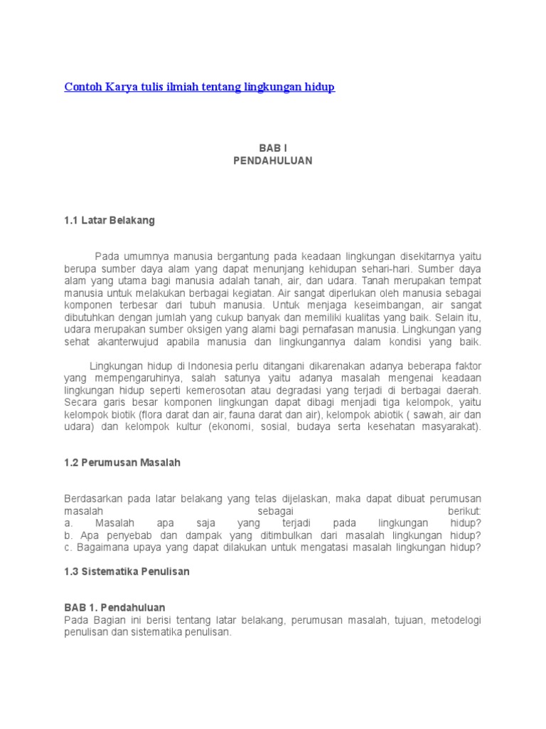 Contoh Karya Tulis Ilmiah Tentang Lingkungan Hidup Pdf - Temukan Contoh