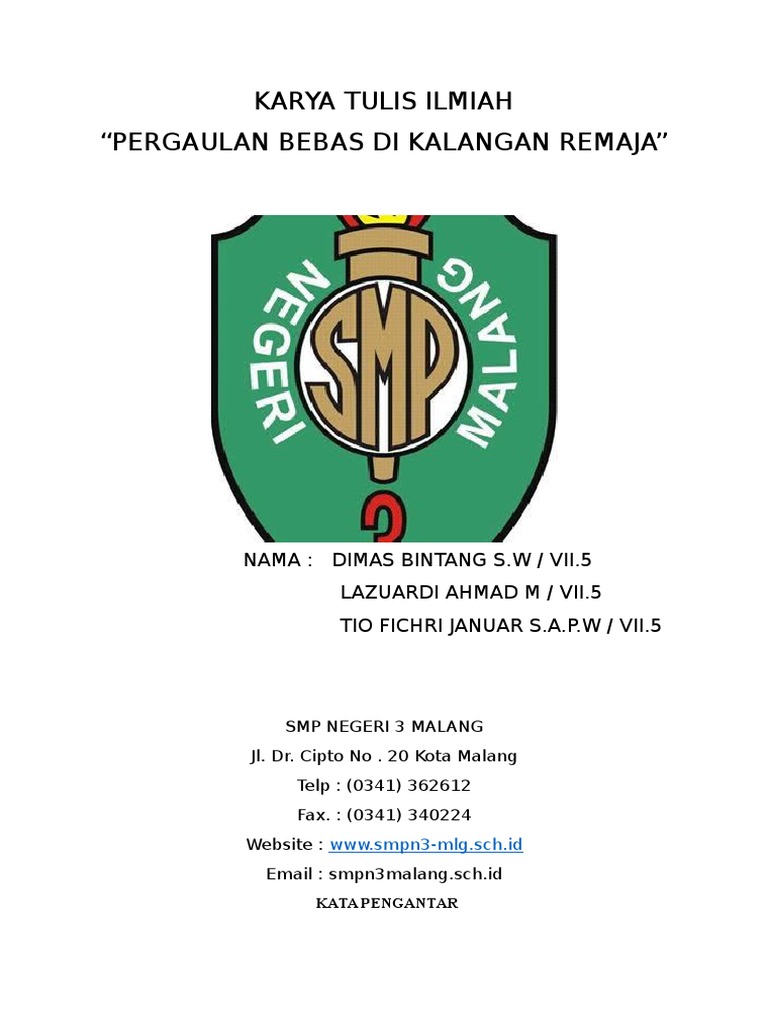 DOC) Karya Tulis Ilmiah Pergaulan Bebas DAMPAK PERGAULAN BEBAS (SEX BEBAS) TERHADAP MENTALITAS DAN KESEHATAN PADA USIA 12-15 TAHUN KARYA TULIS ILMIAH DIAJUKAN UNTUK MEMENUHI TUGAS MATA PELAJARAN BAHASA INDONESIA KELAS XI