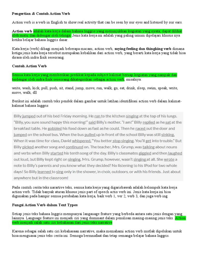 Pengertian & Contoh Action Verb