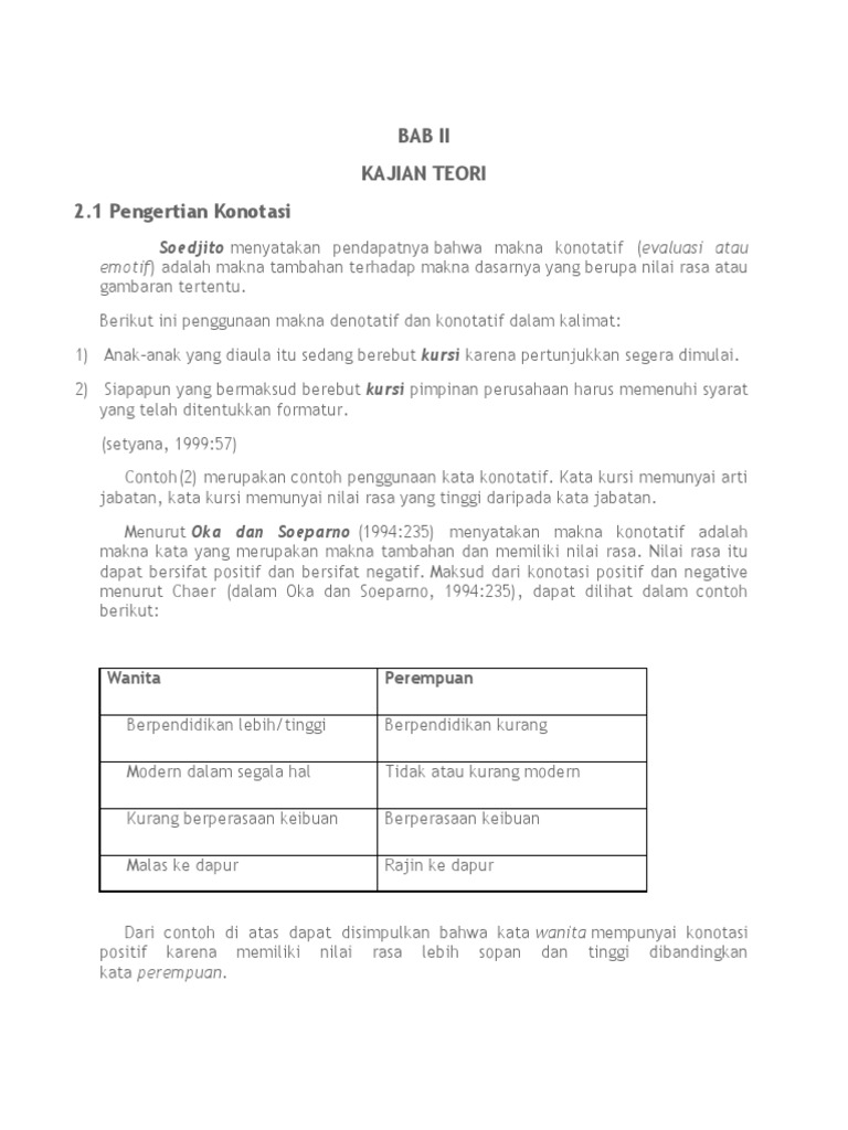 Kalimat konotatif & denotatif - Makna Denotasi dan Makna Konotasi 1 Makna Denotasi Makna denotasi merupakan makna kata yang sesuai dengan makna yang | Course Hero