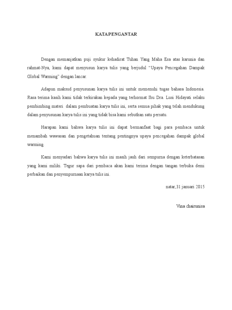 Contoh Kata Pengantar Global Warming - Contoh Jol