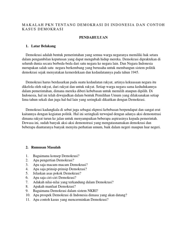 DOC) BAB 1 MAKALAH PKN TENTANG DEMOKRASI DAN CONTOH KASUS DEMOKRASI DI INDONESIA.docx | Mar’atus Syolikha - Academia.edu
