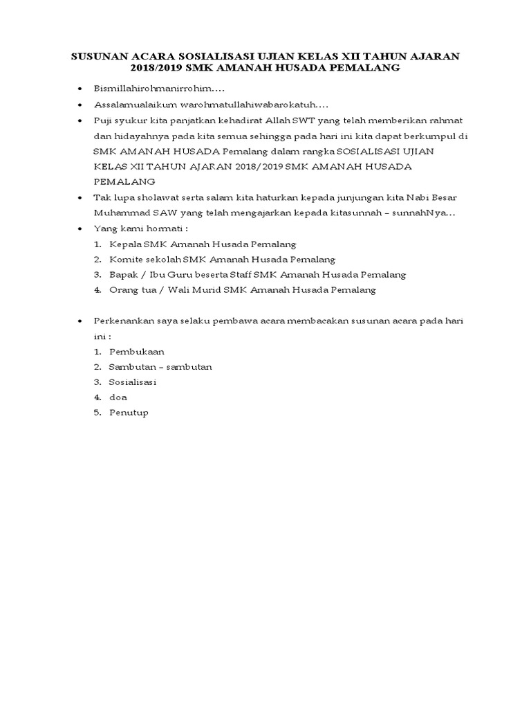 DOC) HADIRIN YANG BERBAHAGIA SEBELUM ACARA DIMULAI, IJINKAN KAMI MEMBACAKAN SUSUNAN ACARA PADA PAGI HARI INI | promoter polrescilacap - Academia.edu