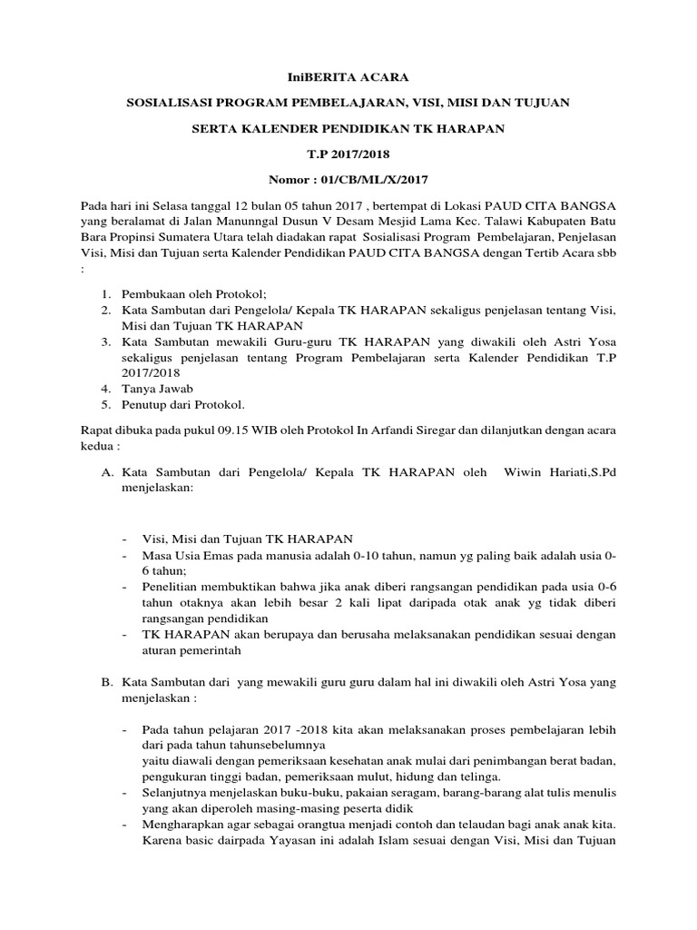 BERITA ACARA SOSIALISASI KALENDER VISI MISI TK HARAPAN.docx