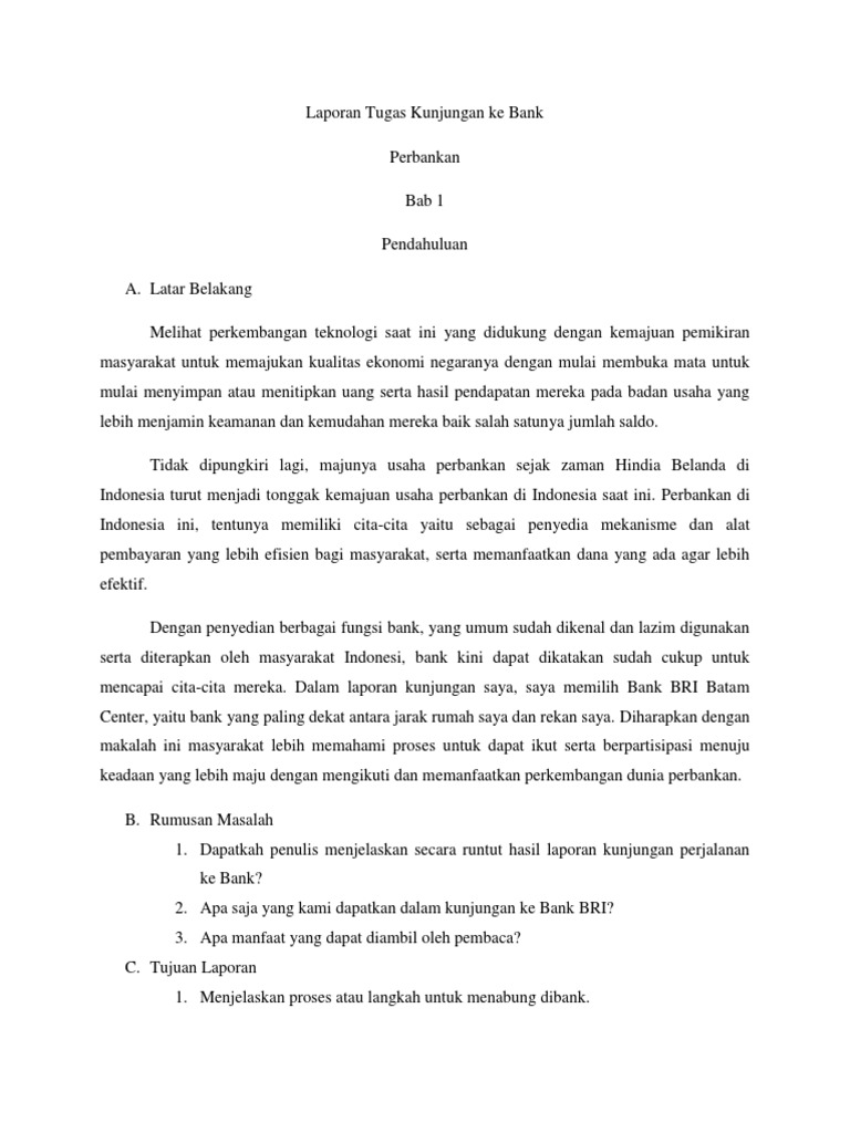 Laporan Tugas Kunjungan Ke Bank