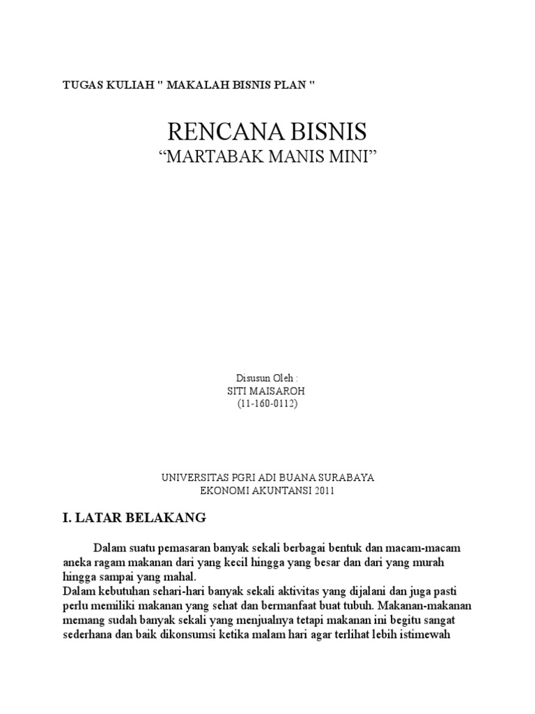 DOC) CONTOH TUGAS KULIAH BISNIS PLAN | aby kembar - Academia.edu