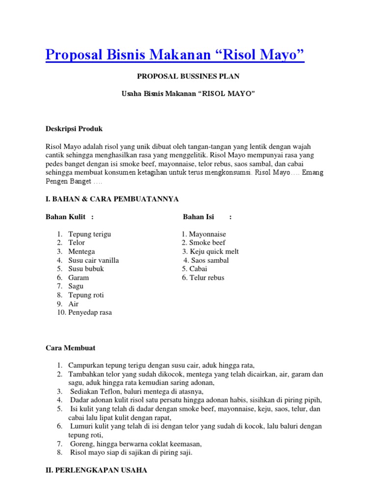 DOC) Contoh Proposal usaha makanan | Rohmat Tamvan - Academia.edu