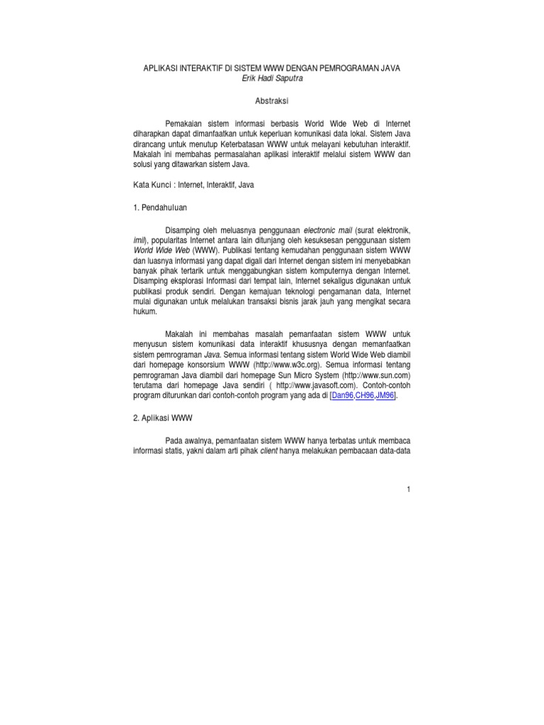 Aplikasi Interaktif Di Sistem Www Dengan Pemrograman Java