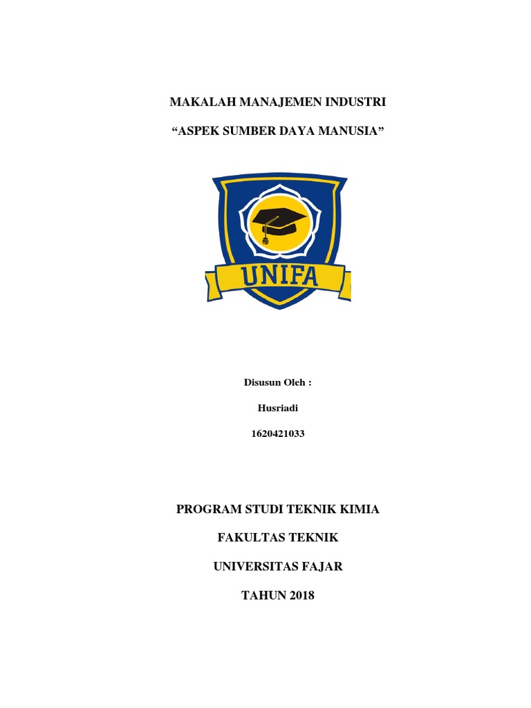 Makalah Manajemen Industri “Aspek Sumber Daya Manusia”: Disusun Oleh: Husriadi 1620421033