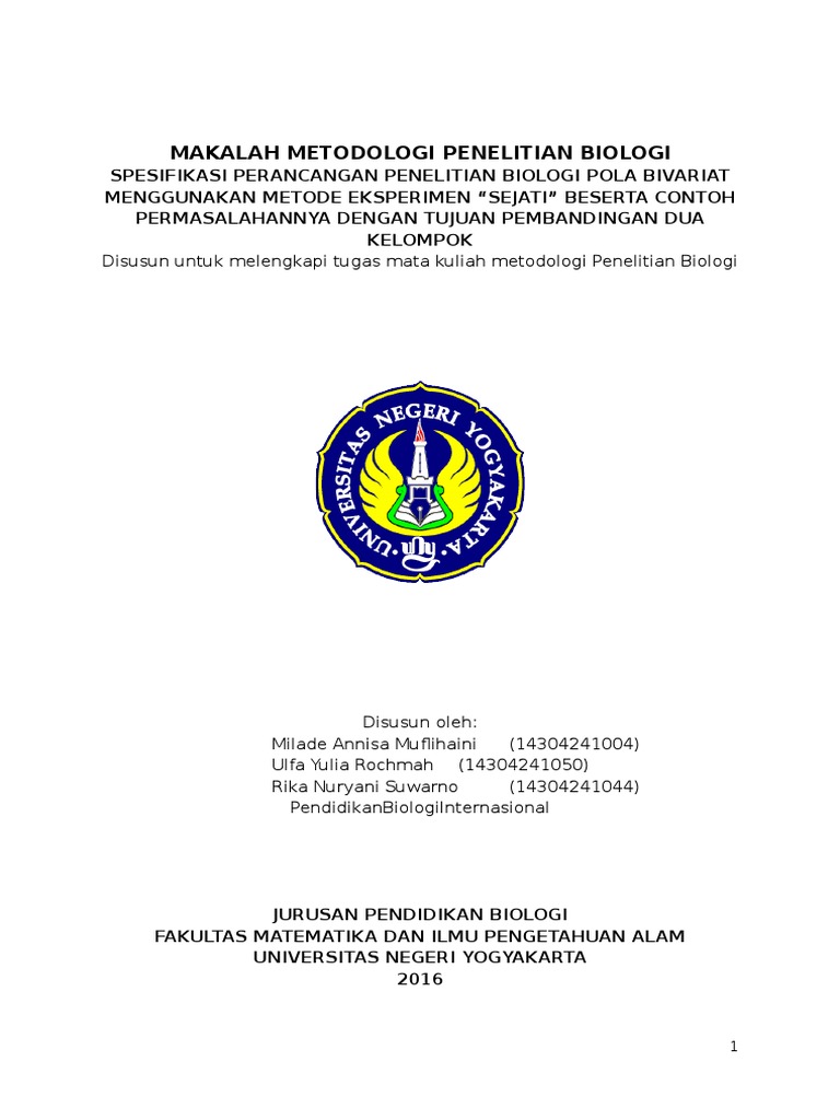 Makalah Metode Penelitian Biologi Bivariat Eksperimen