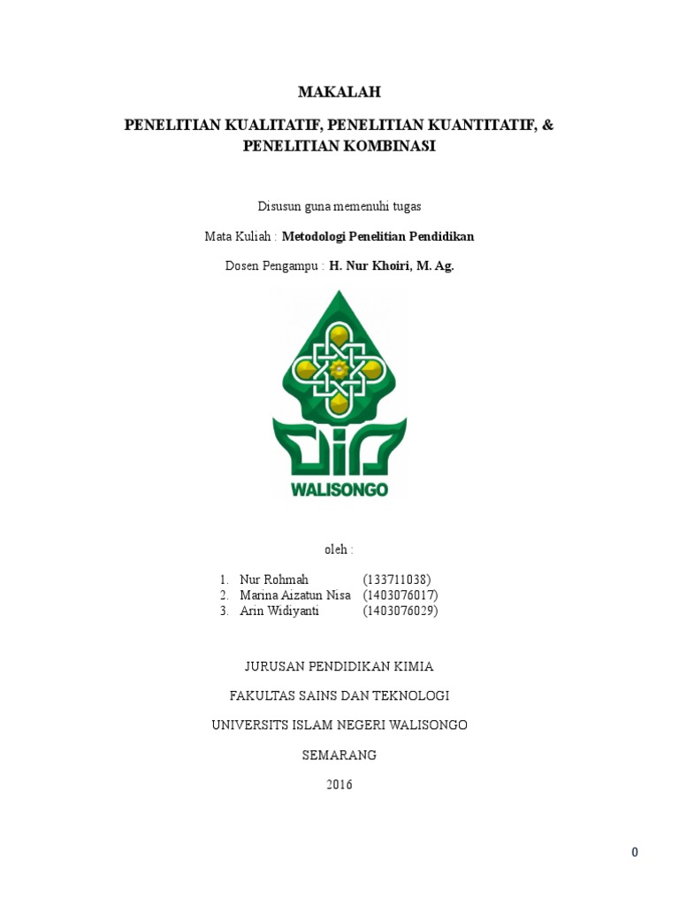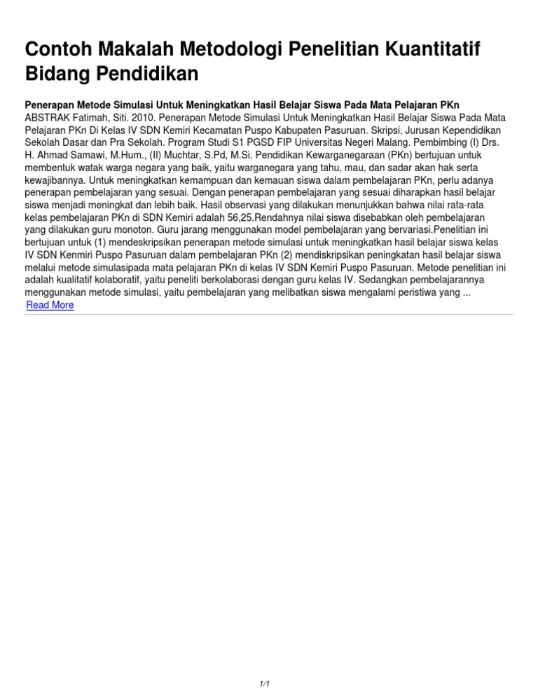 Contoh Makalah Metodologi Penelitian Kuantitatif Bidang Pendidikan