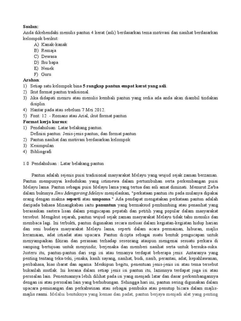 176622400-Bentuk-Dan-Jenis-Pantun.docx - Bentuk dan Jenis-jenis Pantun Pantun terdiri dari banyak jenis dan bentuk Jenis-jenisnya ialah pantun dua kerat | Course Hero