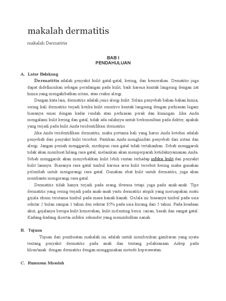 Makalah Lengkap Dermatitis Dan Pengobatan - [DOC Document]