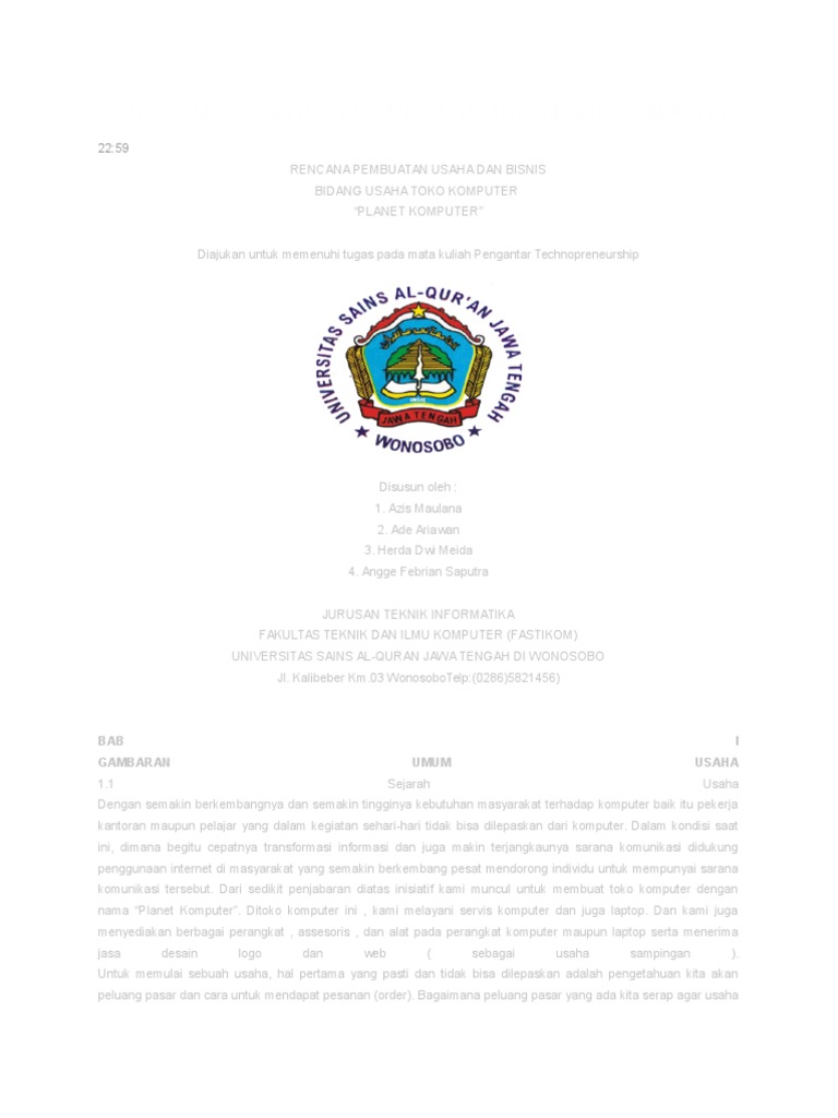 DOC) CONTOH TUGAS KULIAH BISNIS PLAN | aby kembar - Academia.edu