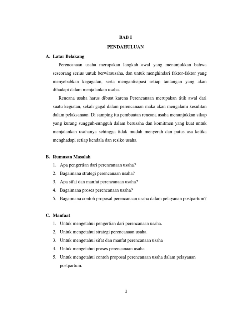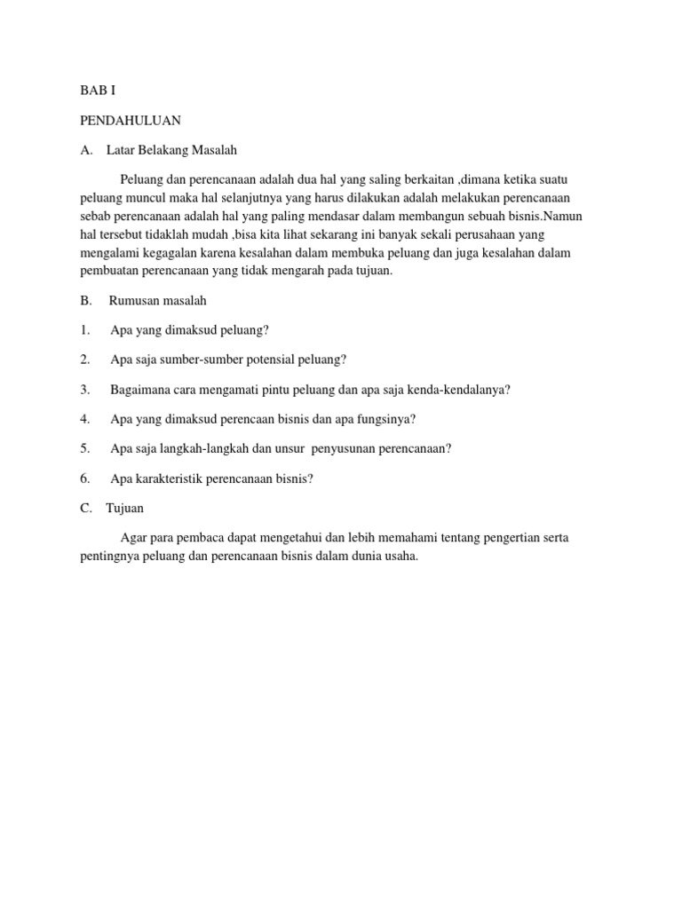 Contoh Makalah Tentang Perencanaan Bisnis (Business Plan).docx - BAB I PENDAHULUAN A Latar Belakang Membuka usaha baru tidak mungkin tanpa ada rencana | Course Hero