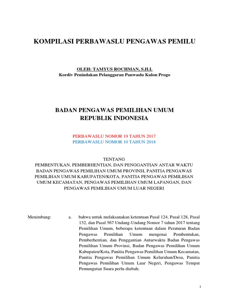Kompilasi Perbawaslu Tentang Pembentukan Bawaslu Dan Panwaslu