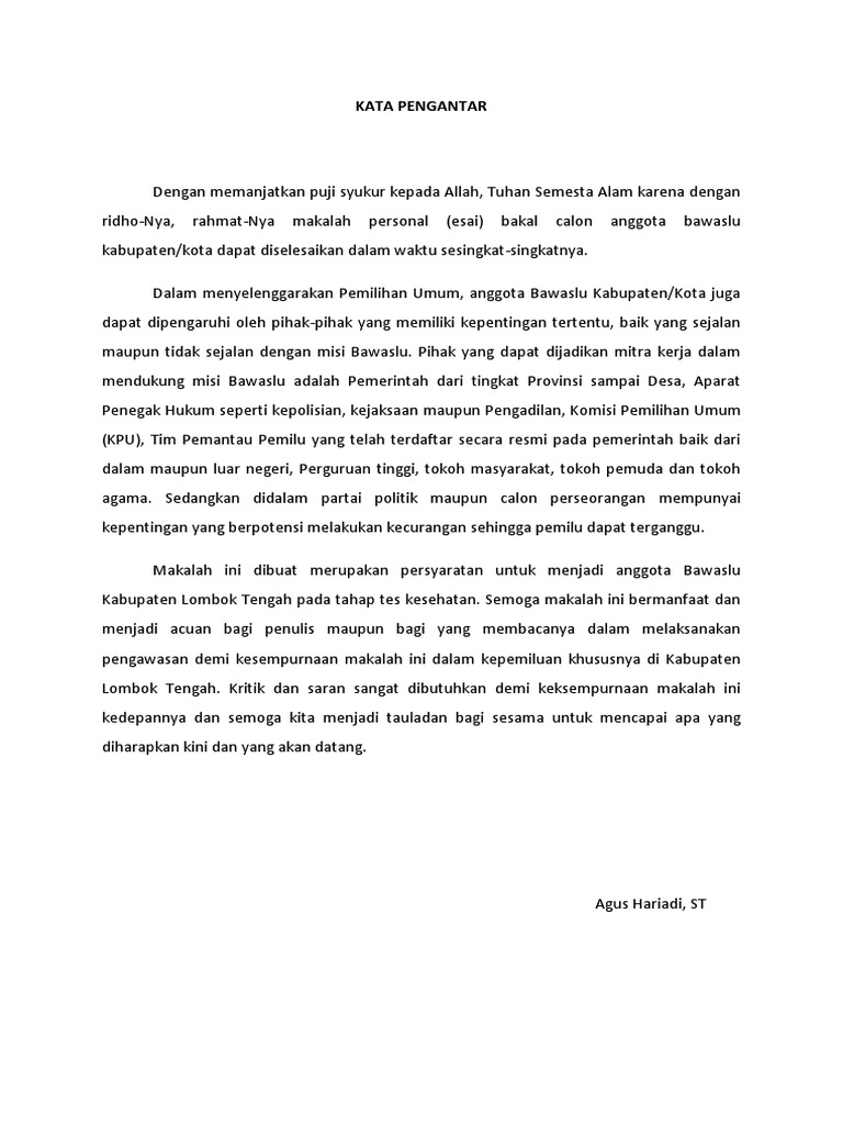 PDF) PEDOMAN PENYUSUNAN MAKALAH PERSONAL (ESAI) BAKAL CALON ANGGOTA PANWASLIH KABUPATEN/KOTA | M. Fajrianda - Academia.edu