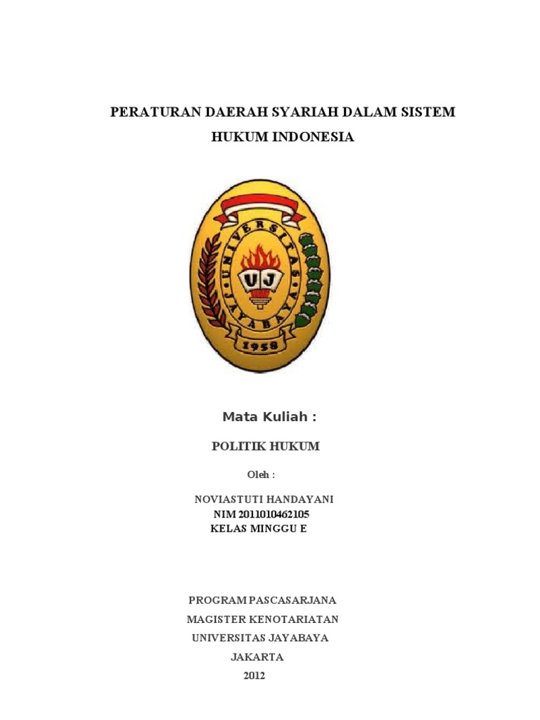 Tugas Makalah Politik Hukum - Noviastuti Handayani 2011010462105