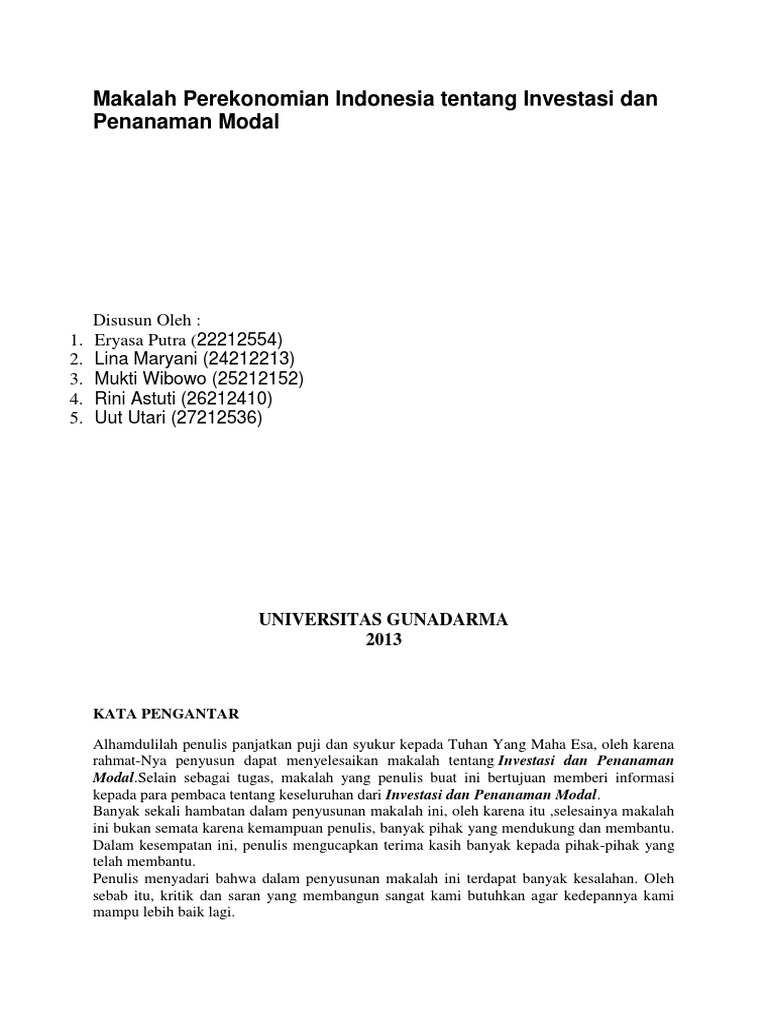 DOC) MAKALAH Pengaturan Penanaman Modal Di Indonesia | Tenz A - Academia.edu