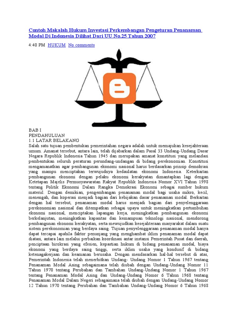 Contoh Makalah Hukum Investasi Perkembangan Pengeturan Penanaman Modal Di Indonesia Dilihat Dari UU No.25 Tahun 2007 | Feel in Bali