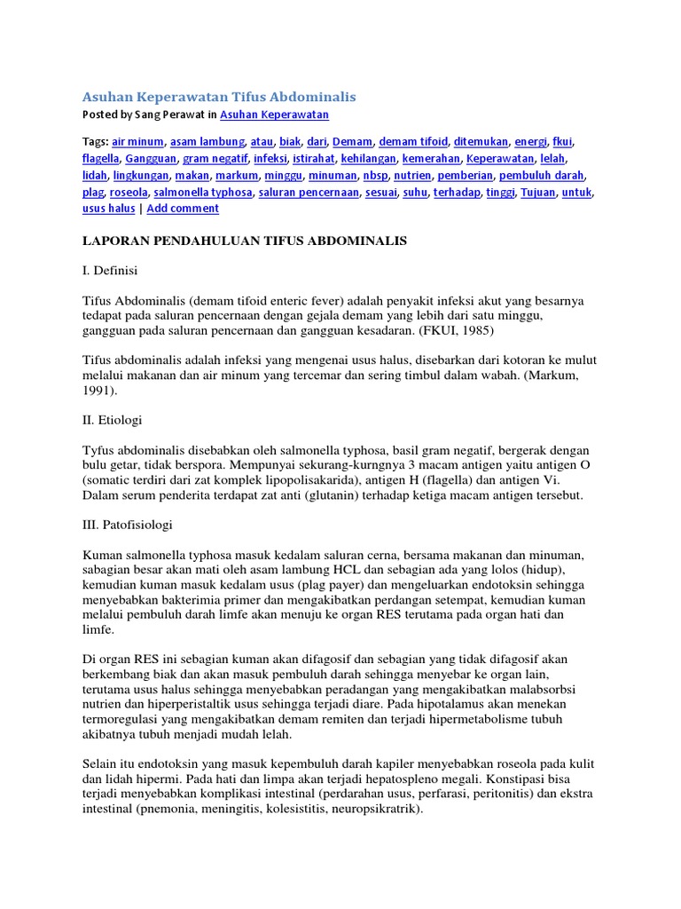 DOC) TUGAS MAKALAH KESEHATAN THYPUS (TIFUS ABDOMINALIS) Adip NIM H2A0120 Alvian NIM H2A0120 Leila NIM H2A0120 Sylviana Puspitasari F NIM H2A012025 | Sutardi Putri - Academia.edu
