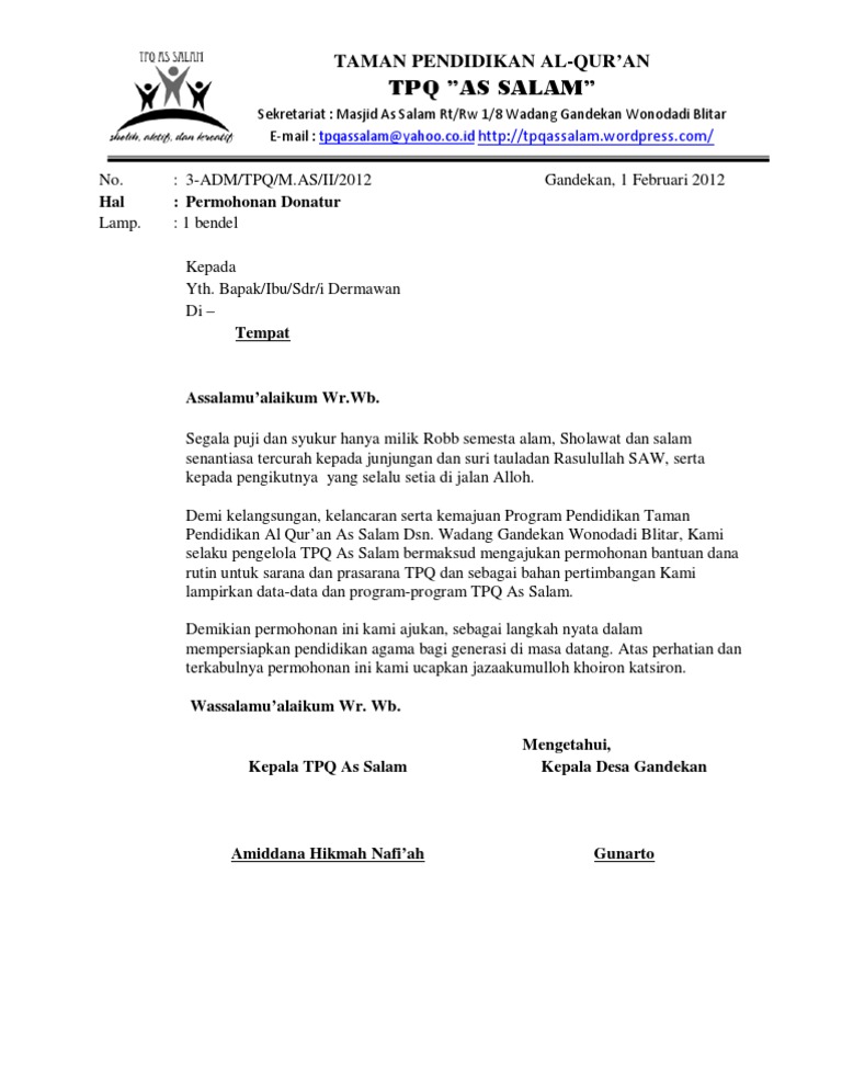 Cara Memuat Surat: Contoh Surat Permohonan Bantuan Dana Pembangunan Tpq