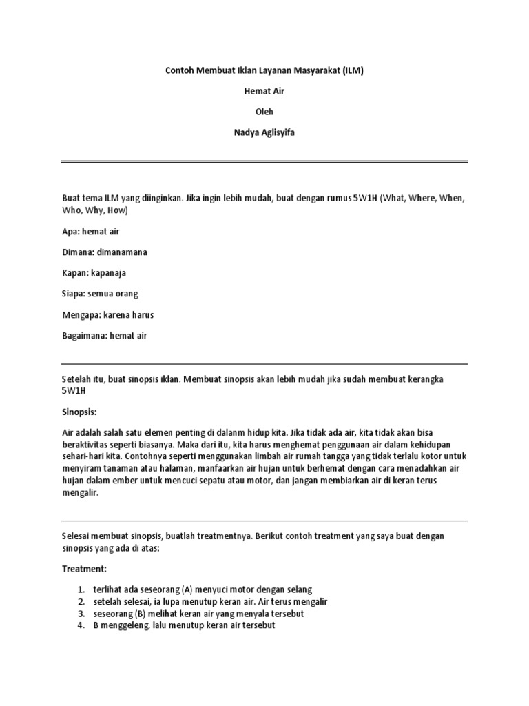 Contoh Storyboard Iklan Layanan Masyarakat Hemat Air - Bagikan Contoh