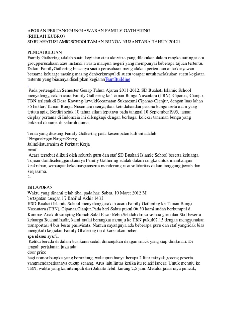 Contoh Laporan Pertanggungjawaban Kegiatan Family Gathering - Kumpulan Contoh Laporan