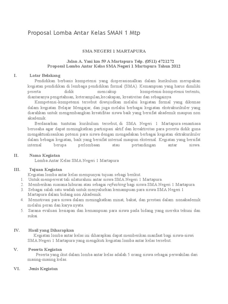 Proposal Lomba Antar Kelas SMAN 1 Mtp
