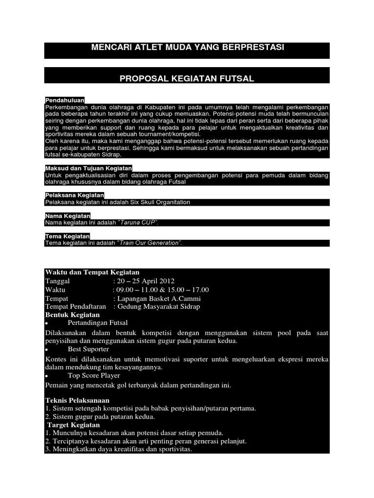 Proposal Kegiatan Futsal Antar Kelas | Riflan Prasetya - Academia.edu