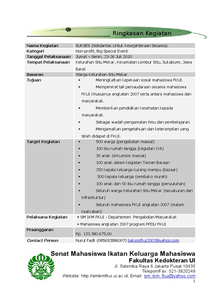 Contoh Contoh Proposal Kegiatan Kampus Ui | Laporan Keuangan Organisasi Keagamaan