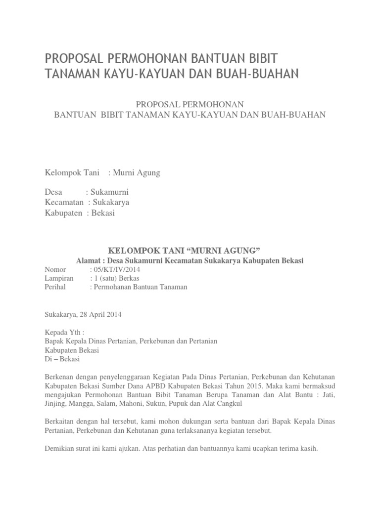 Contoh Proposal Bantuan Bibit Pertanian Contoh Miri Cute766