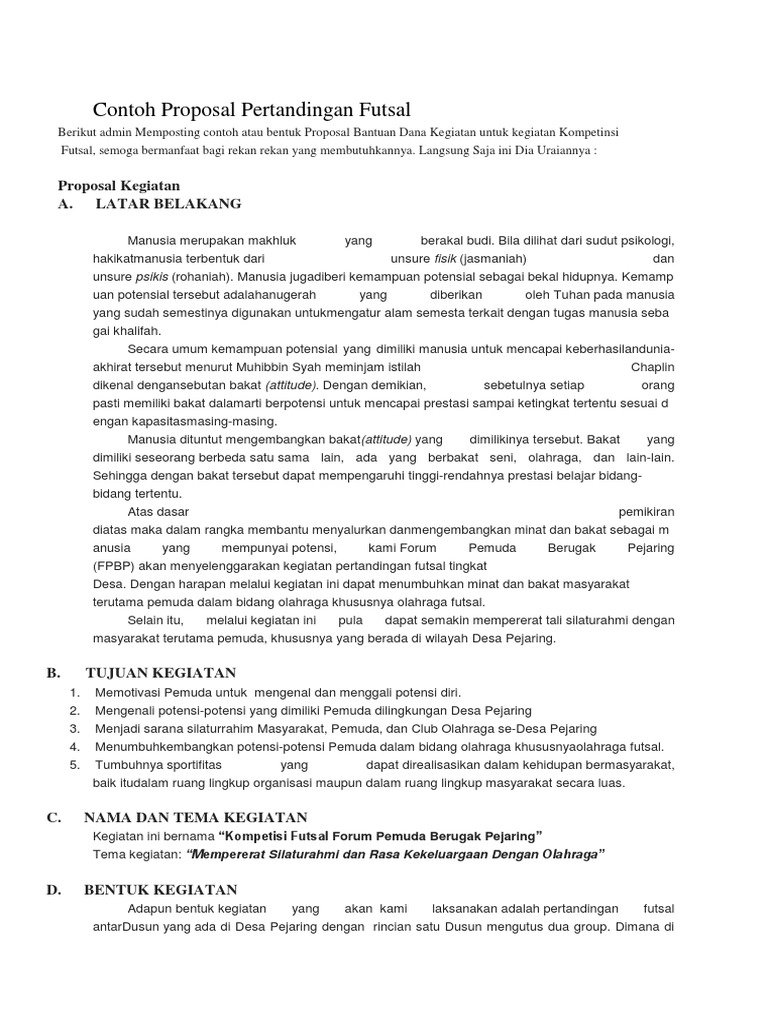 PDF) PROPOSAL KEGIATAN OLAHRAGA FUTSAL | renaldi syarif - Academia.edu