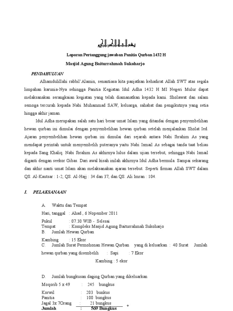 Contoh Laporan Kegiatan Idul Adha Di Sekolah - Kumpulan Contoh Laporan
