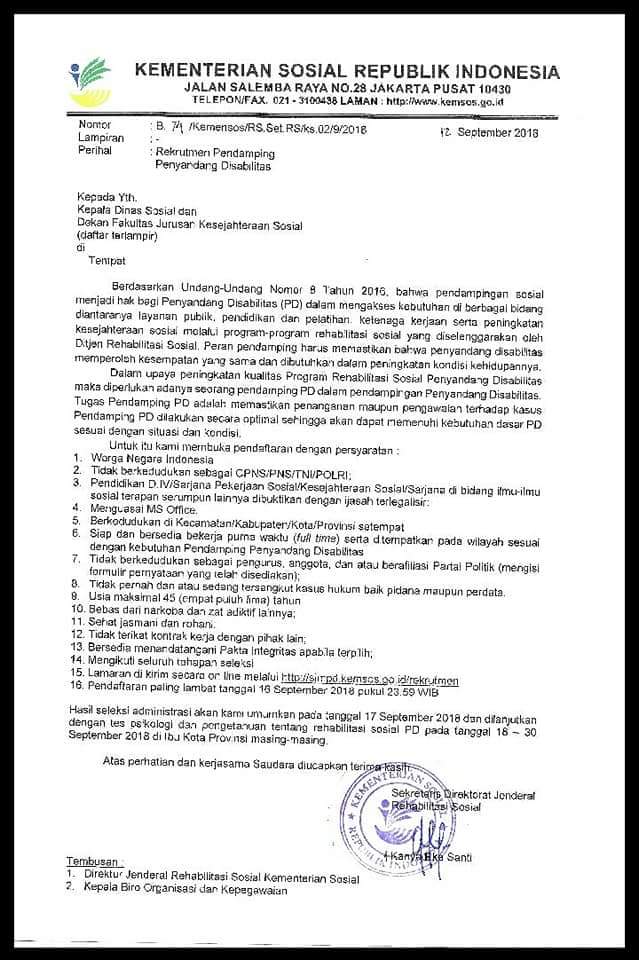 Lowongan Kerja Pendamping Disabilitas Kemensos 2018 - KPMD
