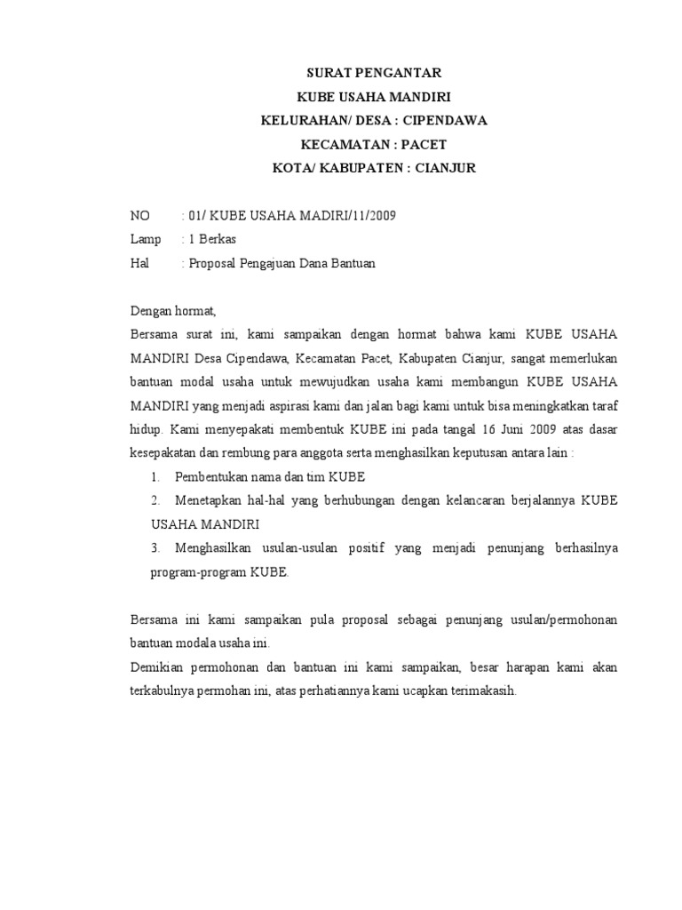 Contoh Surat Pengantar Proposal Usaha/Kelompok Usaha Bersama (KUB) ~ Secercah Ilmu