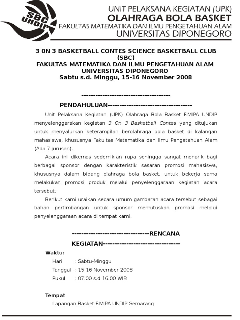 Contoh Proposal Kegiatan Bola Basket - Joonka