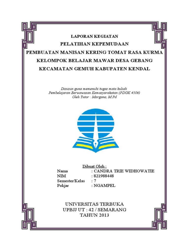 CONTOH LAPORAN PRAKTIK PROGRAM PEMBINAAN KEPEMUDAAN UNIVERSITAS TERBUKA (UT) | MasGie