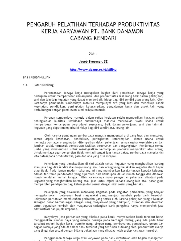 Proposal MSDM Pengaruh Pelatihan Kerja Terhadap Produktivitas Kerja karyawan