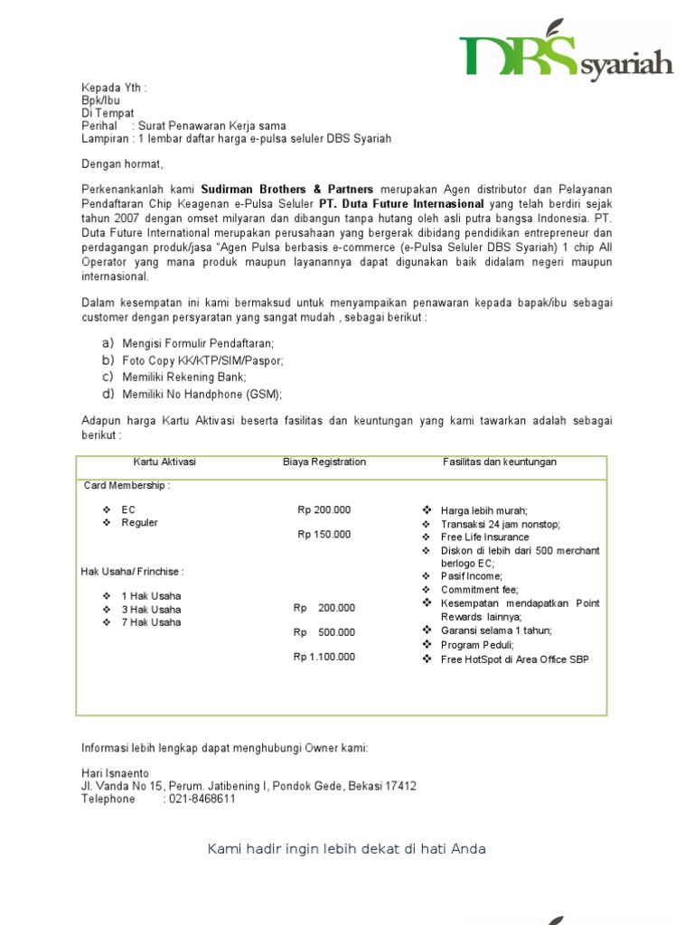 Contoh Surat Penawaran Harga Jasa | Surat, Kartu nama, Gagasan