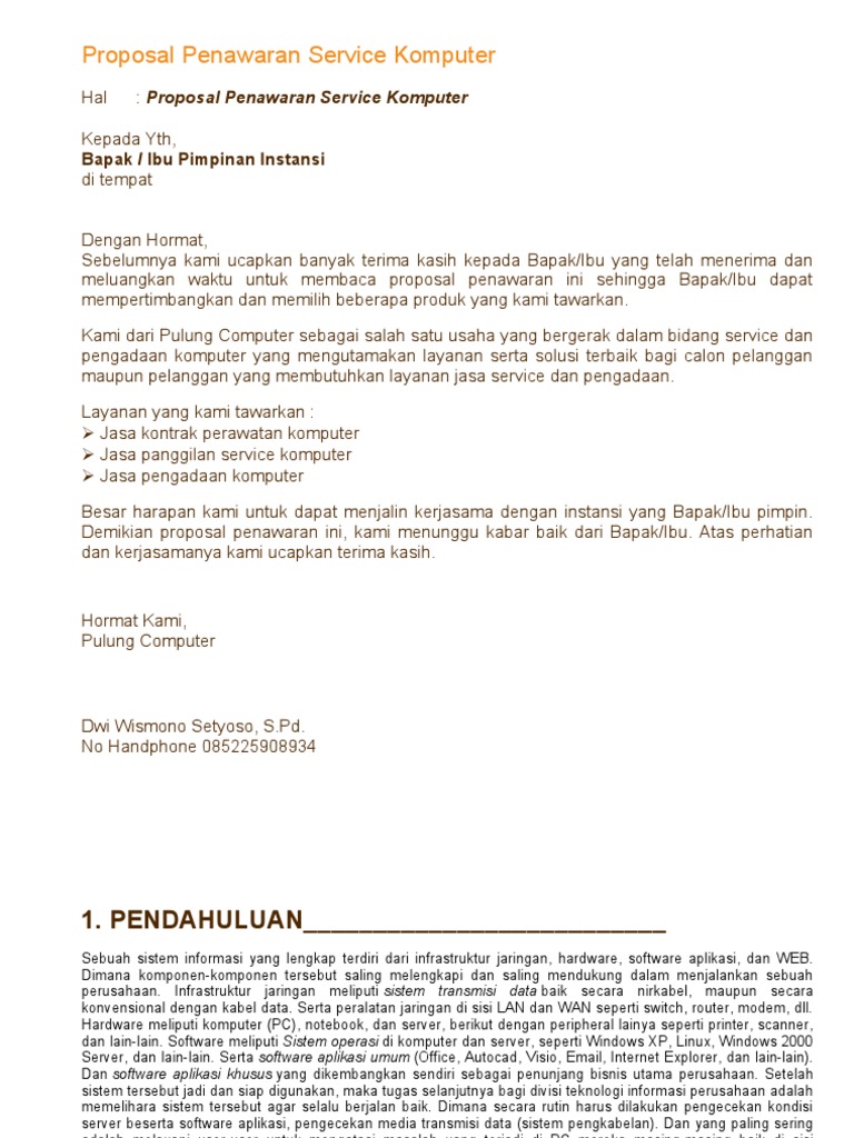 Contoh Proposal Penawaran Jasa Service Komputer