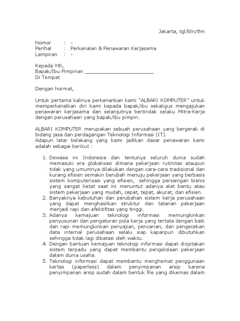 12 + Contoh Surat Penawaran Kerjasama | Barang | Jasa | Produk yang Baik dan Benar - Balubu