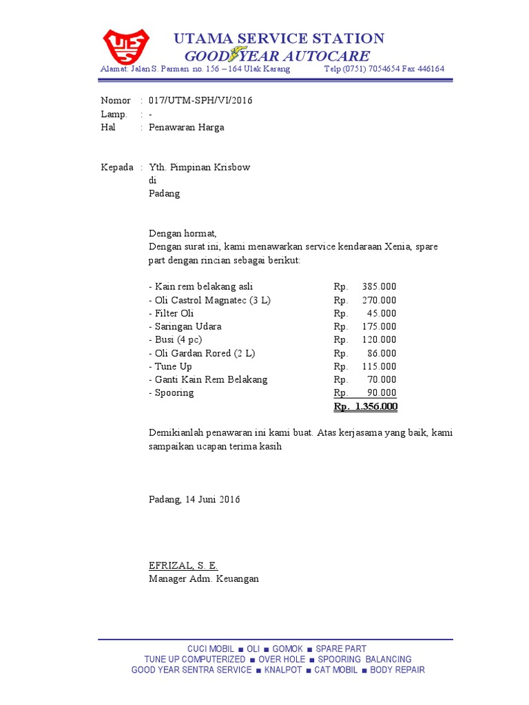 Surat Penawaran Harga Service Kendaraan
