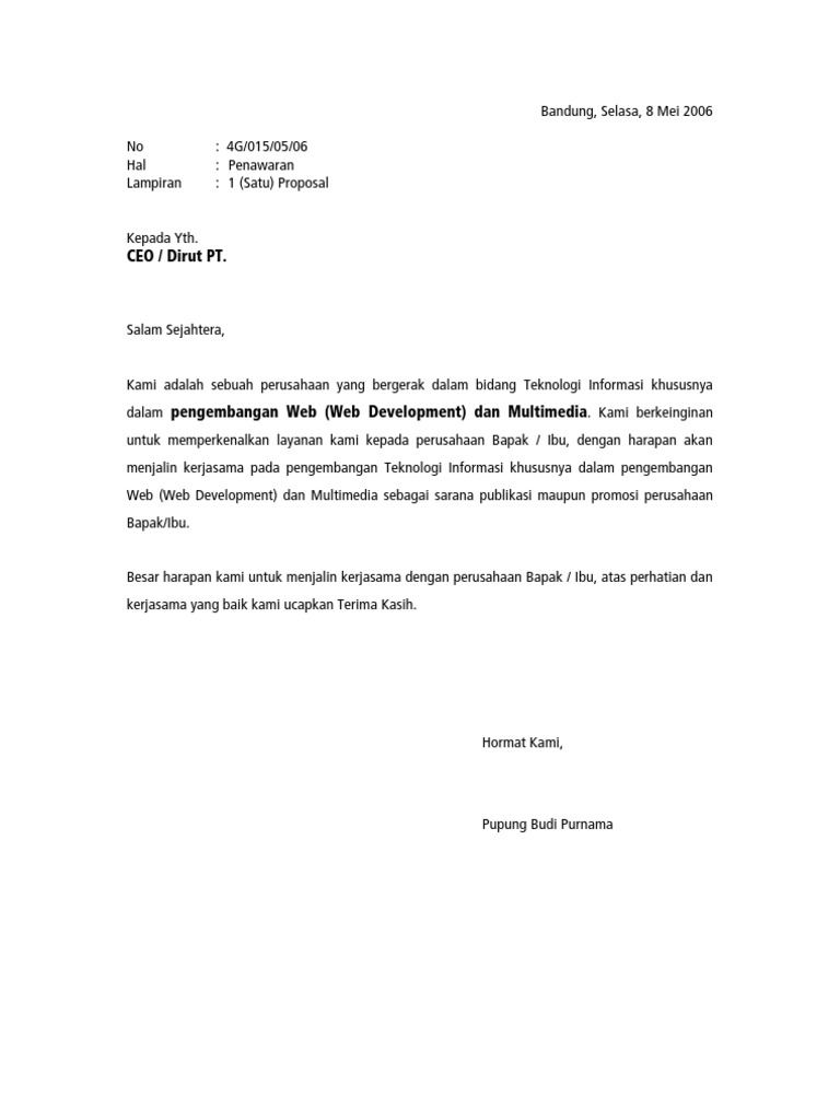 Contoh Surat Proposal Penawaran Produk Multimedia - aboutfasr