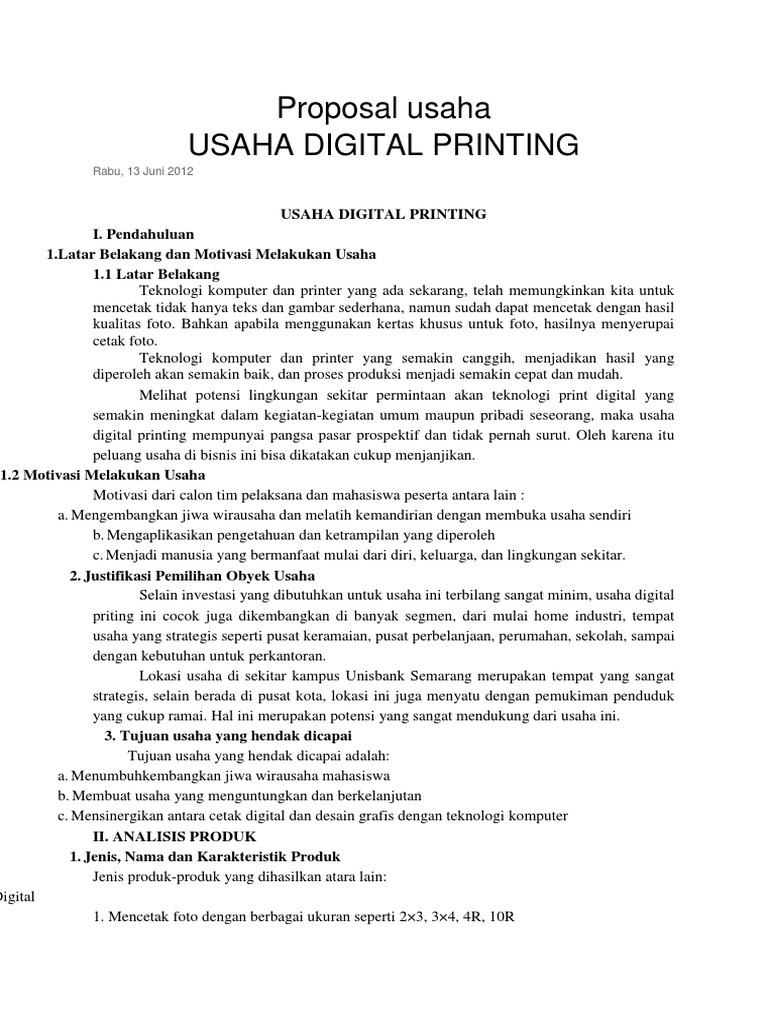 DOC) Contoh Proposal Usaha Digital Printing | andri setiadi - Academia.edu