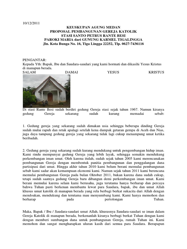 Contoh Proposal Bantuan Dana Pembangunan Gereja Katolik - Berbagi Contoh Proposal