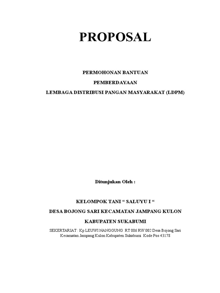Contoh Proposal Pengembangan Usaha Pangan Masyarakat