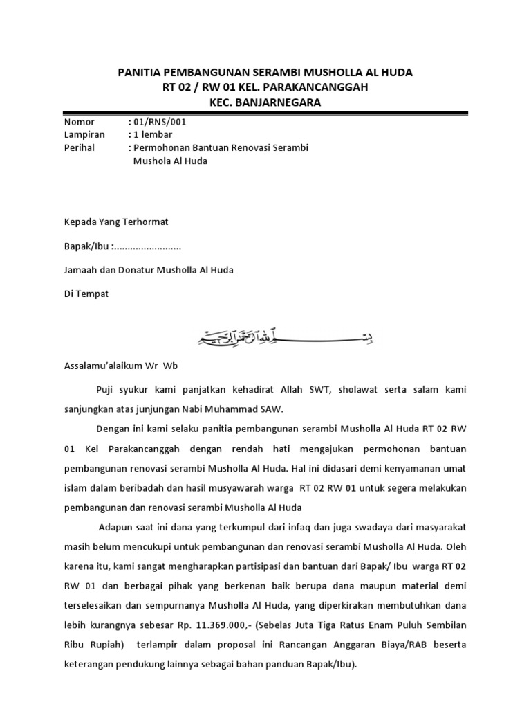 DOC) Permohonan Bantuan Dana Mushola | Gunawan R - Academia.edu