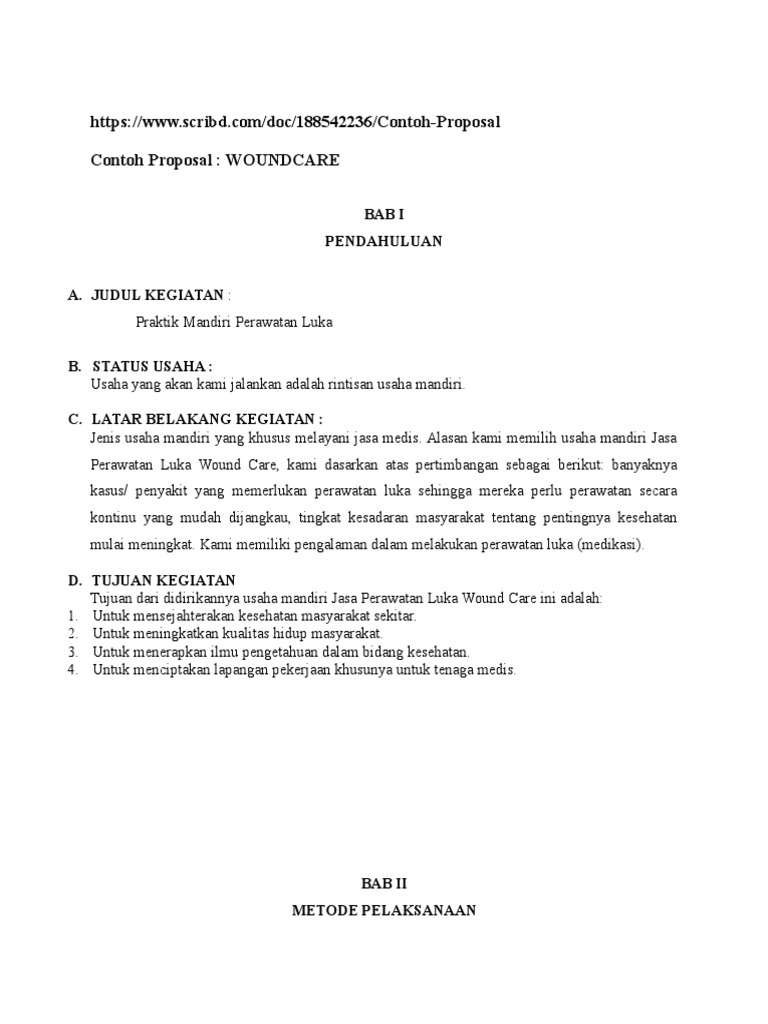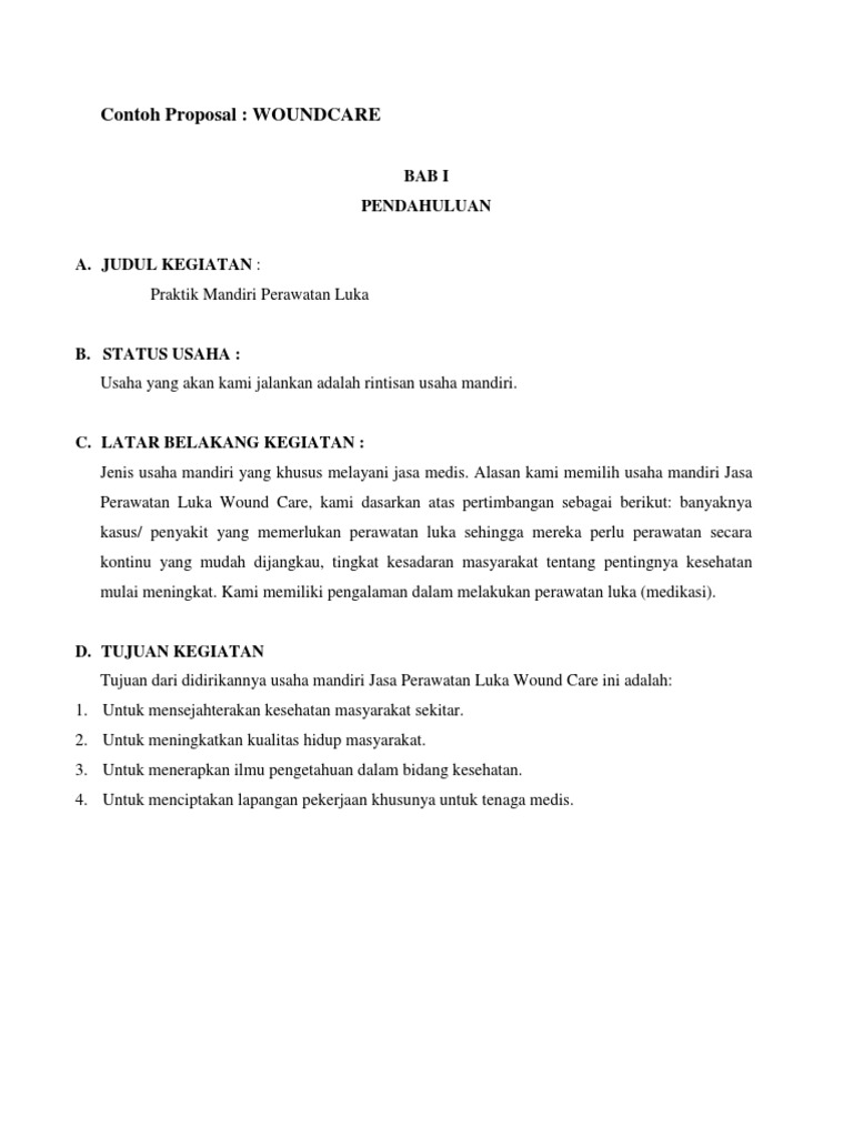 Contoh Proposal: WOUNDCARE: Bab I Pendahuluan