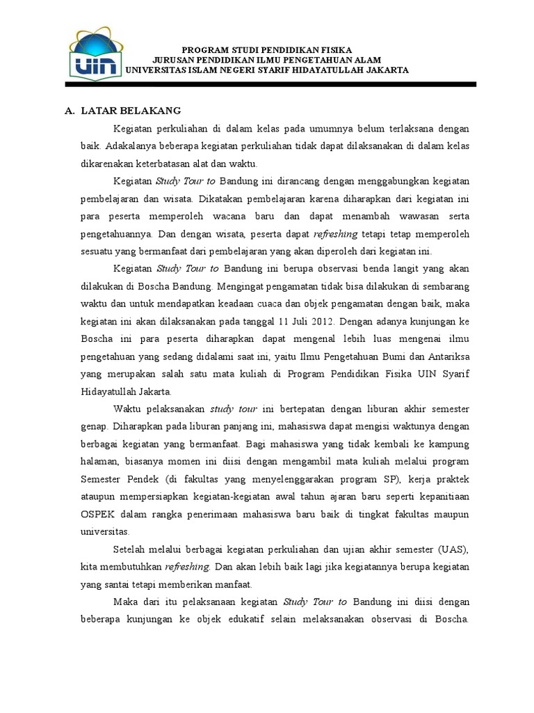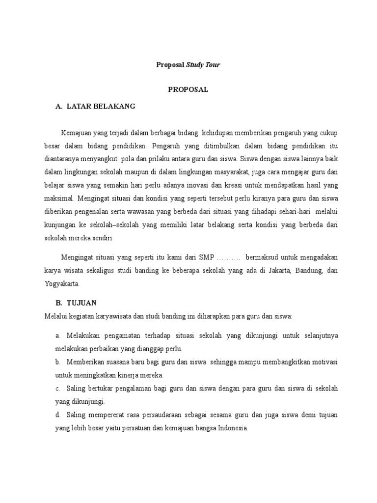 Contoh Proposal untuk Mengajukan Bantuan Dana Kegiatan semua ada Proposal-study tour